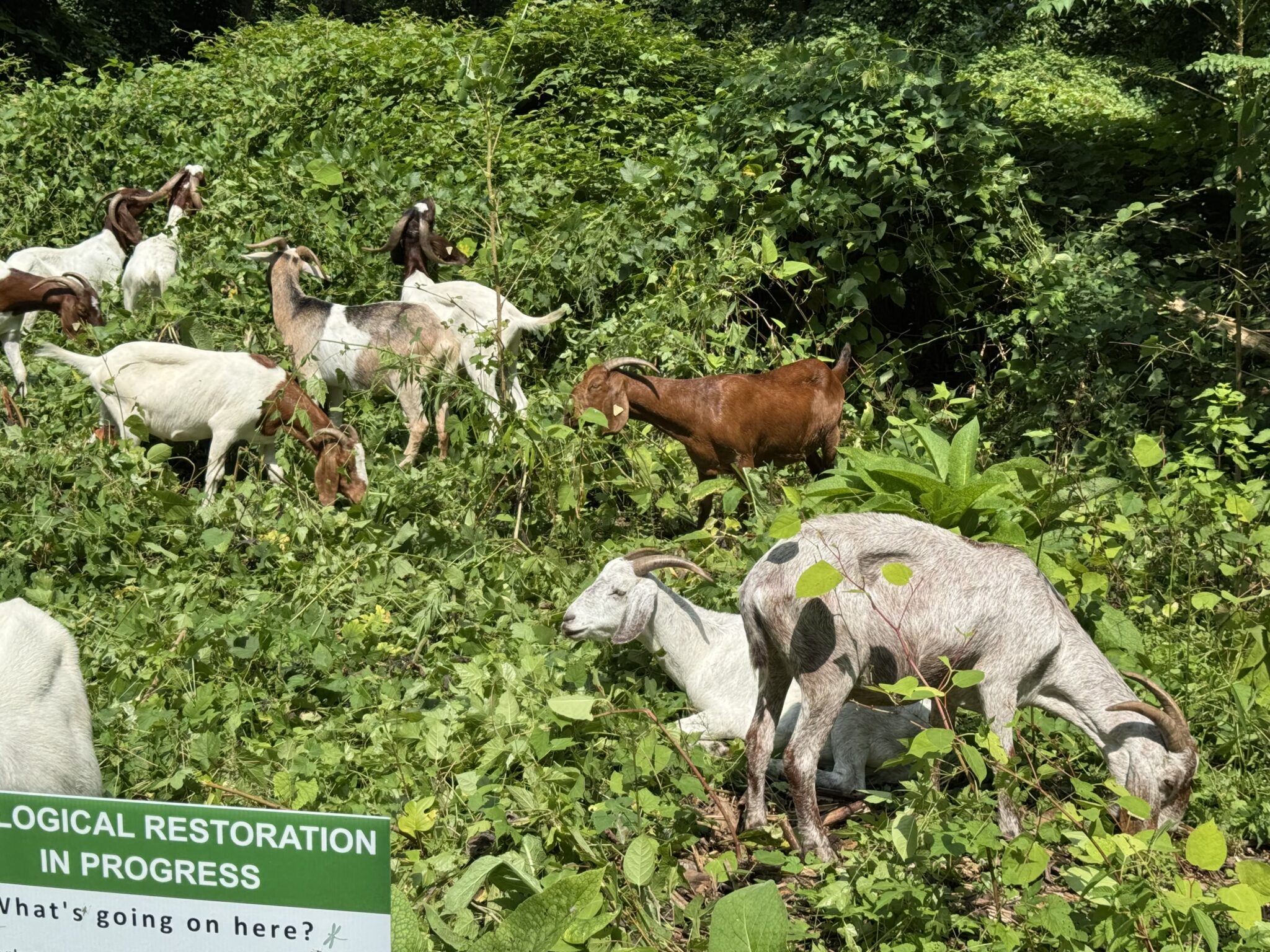 Goats from Amazing Grazing are eating down invasive plants in the Preserve, come see them work!
