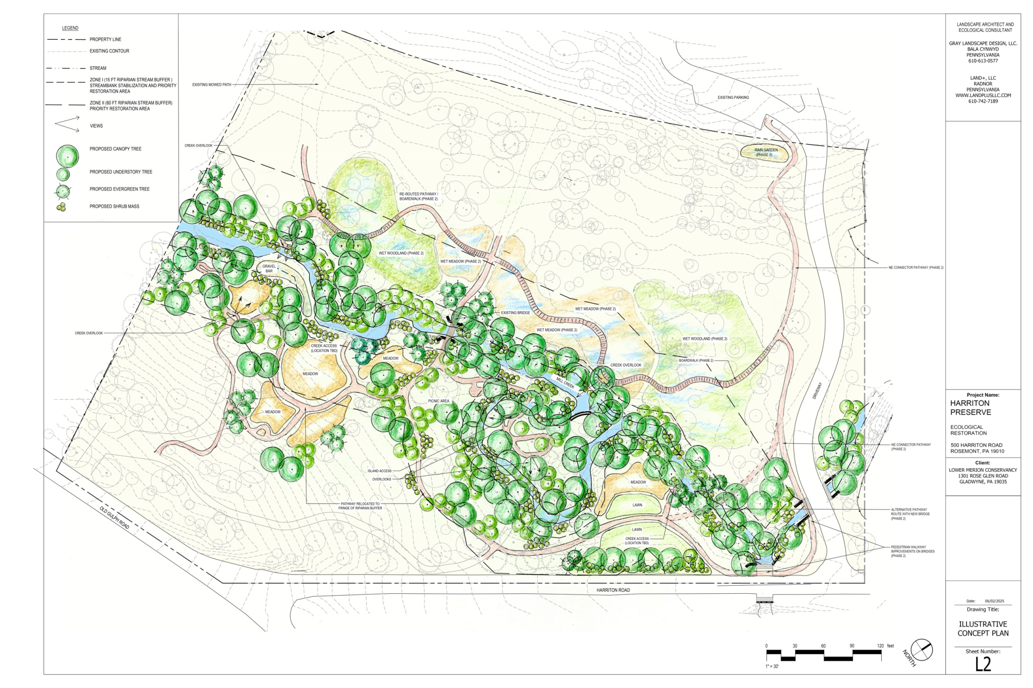 The plants we are putting in will help restore what was lost, creating ecological benefits at the Preserve and serving as an example for other streamside properties. We will share updates as the project progresses. Here is the concept plan from Gray Landscape Design, LLC: